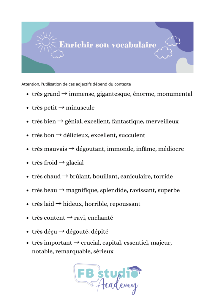 Voici quelques adjectifs pour enrichir votre vocabulaire.